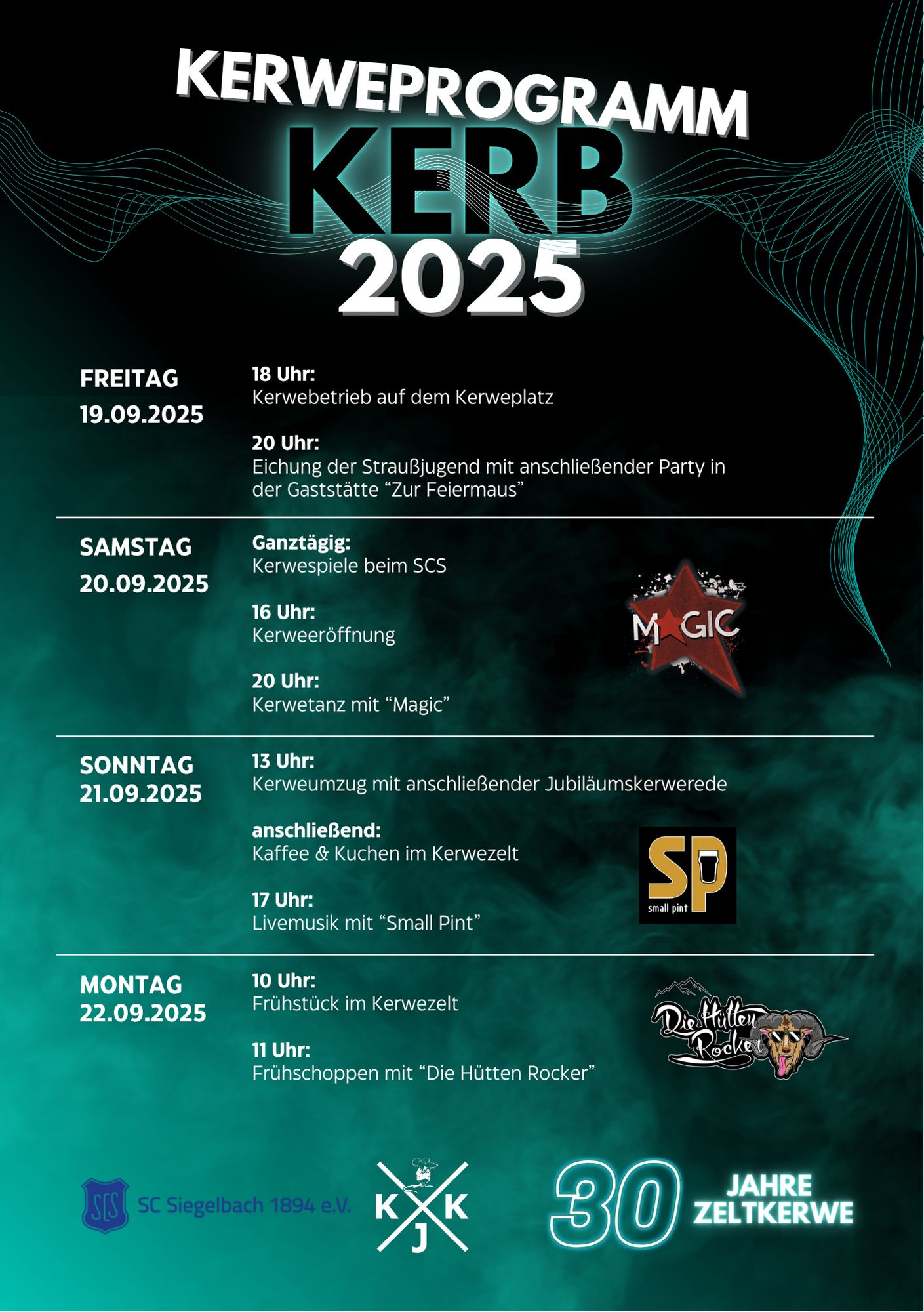 Der KKJ-Siegelbach e.V. wurde 1995 gegründet. Wir haben uns, gemäß unserer Satzung, der Förderung der Kerwe, Kultur und Jugend in Siegelbach verschrieben und sind seit dem 11. Juli 2000 als gemeinnützig anerkannt.